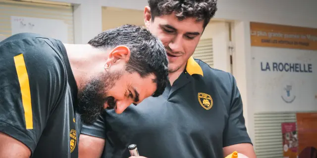 Ce mercredi, le service pédiatrique du Centre Hospitalier de La Rochelle a accueilli une visite pas comme les autres. Les joueurs professionnels de rugby et de basket du Stade Rochelais sont venus passer un moment aux côtés des enfants hospitalisés.